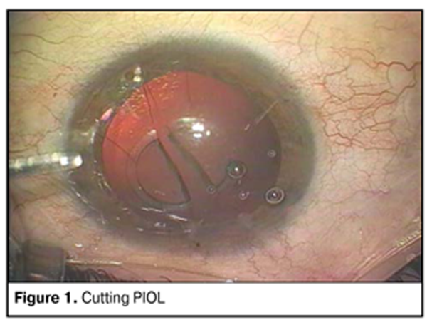 The purpose of the present study was to improve the technique for cataract extraction in patients with posterior chamber PIOLs implanted previously.