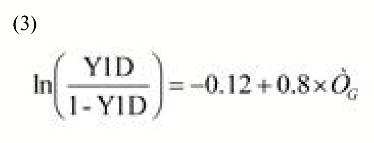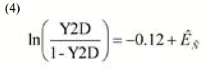 where Y2D is the probability of any progression in the development of the pathological process (based on the changes in IOP category over two years); KС is the coefficient depending on patient sex (KС = 0 for women, KC = -0.81 for men)