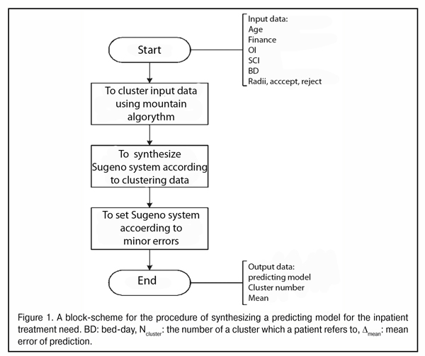 A block-scheme for the procedure of synthesizing an inpatient treatment duration model on the basis of Sugeno fuzzy inference is given in Figure 1.