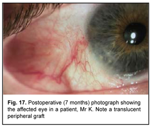 At 7 months after surgery, the peripheral corneal graft was transparent (Fig. 17) and UCVA was 1.0 OU.