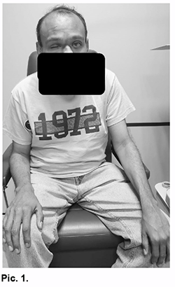 Physical examination revealed a marfanoid habit, long fingers predominant in upper extremities, slight brachy-cephaly, scant hair with good implantation, his attitude denotes mental deficiency; no other significant findings (Pic. 1).