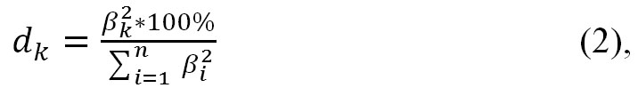 βk is beta coefficient of the independent variable of regression equation; and the term of the fraction represents the sum of squares of beta coefficients for all independent variables.