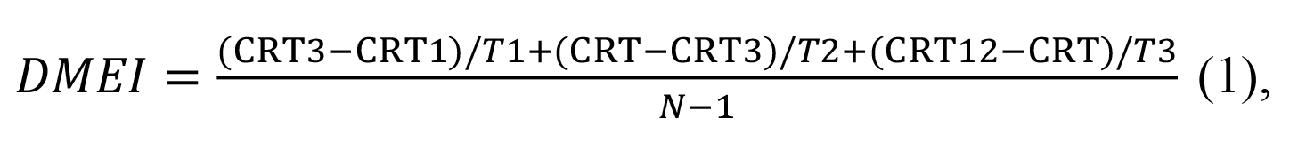 where CRT1, CRT3, CRT6 and CRT12 are CRT values at months 1, 3, 6 and 12, respectively;