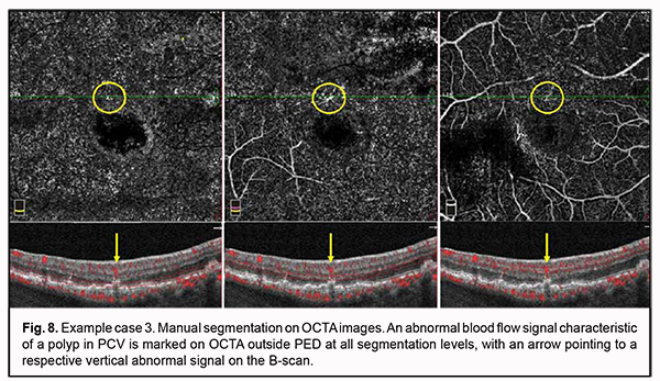 The purpose of this paper was to demonstrate the clinical use of the algorithm for OCTA-based differential diagnosis of PCV in patients with supposed PCV.