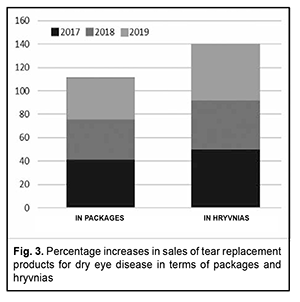 Discussion There was almost a constant annual increase in the amount of sales of TRPs for treating DES in terms of packages and hryvnias, respectively, over the period of 2016-2019 (Fig. 3).