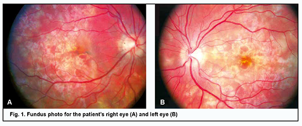 Discussion In patients with APMPPE, typical fundus changes may be accompanied by anterior uveitis, optic edema, periphlebitis [24], serous retinal detachment, and vascular occlusion. The disease may be accompanied by neurological symptoms (headache), aseptic meningitis [25], and abnormal cerebral circulation due to cerebral vasculitis [17]. Large ischemic strokes can occur and have been reported to result in patient death [26]. In cases with ocular lesions only, visual acuity typically restores back to normal within weeks to months after disease onset, although permanent paracentral scotomata may persist [27]. Choroidal neovasculariation is a rare potential late complication of APMPPE. The differentiatial diagnosis of APMPPE should include primarily serpiginous choroiditis, because ophthalmoscopic and angiographic findings in eyes with APMPPE may be similar to those in eyes with acute serpiginous choroiditis. Serpiginous choroiditis may be classified as a placoid epitheliopathy. The disease commonly affects young and middle-age individuals, displays an acute or chronic inflammatory course with recurrences, the primary lesions being in the choriocapillaris and RPE, and the secondary lesions, in the other parts of the retina. Patients with acute onset of serpiginous choroiditis complain of floaters, blurry vision and vision loss. The disease develops more slowly than APMPPE, and patients have angiographic evidence of apparent atrophic changes in choriocapillaris and choroidal vessels. The characteristic biomicroscopic findings include inflammatory cells in the posterior vitreous. Funduscopic examination demonstrates flat, greyish-white confluent lesions at the level of the RPE. A few months after disease onset, geographical patches of choroidal atrophy emerge at the sites of active lesions. In approximately one half of patients, varying amounts of grey-white tissue (fibrous metaplasia of the RPE) develop within the area of chorioretinal atrophy, resembling the picture of degeneration secondary to tuberculous choroiditis. Subretinal neovascularization and hemorrhage may result. Retinal and optic disk vessels are typically not altered. The visual field demonstrates absolute and/or relative scotomata corresponding to the geographic lesion. In chronic cases, early disease is typically not associated with vision loss, and frequently remains unidentified. In serpiginous choroiditis, lesions are located peripapillary or juxtapapillary, occasionally a serous RPE detachment may occur. At intervals varying from weeks to months, the patient is subject to recurring episodes of varying disease activity. Ophthalmoscopy finds fresh lesions involving new and contiguous areas of choroidal atrophy and macular edema. In addition, it reveals numerous old chorioretinal scars in the peripheral fundus. Inflammatory cells are seen in the posterior vitreous, evidencing the progression of the process. Inflammatory cell reaction is present in the posterior vitreous in approximately one-third of cases during the active phase of the disease. Examination of the opposite eye often reveals an area of chorioretinal scarring adjacent to the optic disc. In serpiginous choroiditis, there is angiographic evidence of atrophy of choriocapillaris and choroidal vessels. During the early phases of angiography, the acute gray-white lesions appear nonfluorescent due to destruction of the choriocapillaris, and later they show evidence of staining that usually begins at the border of the lesion and spreads centrally. As fluorescein diffuses from the neighboring choriocapillaris, the atrophic lesions show progressive staining from the margins centrally. The detection of hyperfluorescence at the borders of lesions during the late phases of angiography may be indicative of the activity of the process. It is difficult to differentiate serpiginous choroiditis from tuberculous choroiditis solely on the basis of ophthalmoscopy. Specific tests like X-ray of the kidneys and Mantoux test will be helpful for the differentiation. While differentiating APMPPE from multifocal chorioretinitis, it is important taking into account that, in chorioretinitis, prominent inflammatory lesions are located in the choroid. In the advanced phases, multifocal pigment epitheliopathy can be differentiated from tapetoretinal abiotrophy, because there is evidence of changes in electrophysiological characteristics in the latter disease, but not in the former disease [28, 29]. In our patient with APMPPE, the ERG characteristics were slightly different from normal and yellow-greyish and cream-colored, confluent lesions with poorly defined borders were seen in the posterior segment. In serpiginous choroiditis, lesions are located peripapillary or juxtapapillary, but in our patient, lesions were located in the posterior segment. In addition, there was a significant difference in color between the brownish pink-cream-colored lesions in our patient and grey-black lesions characteristic for serpiginous choroiditis. However, our visual evoked potential records from the patient revealed abnormal function of the visual pathway, demonstrating the necessity for the follow-up examination, including an examination by the neurologist. Acute retinal pigment epitheliitis is another disease to consider in the differential diagnosis of APMPPE. The etiology of the disease is unknown. It has been hypothesized that the development of the disease is linked to viral replication in the RPE. Acute RPE inflammation is an initial event in the pathogenesis of the disease. The clinical pattern is characterized by an acute onset of the disease, with loss of vision due to macular involvement. Numerous or isolated dark lesions with perifocal, whitish-yellow zones appear in the macular area. The lesions increase in size and number and assume an appearance of cystic clusters. In the acute phase of RPE inflammation, macular changes are subtle and may be misidentified as the early phase of other retinal